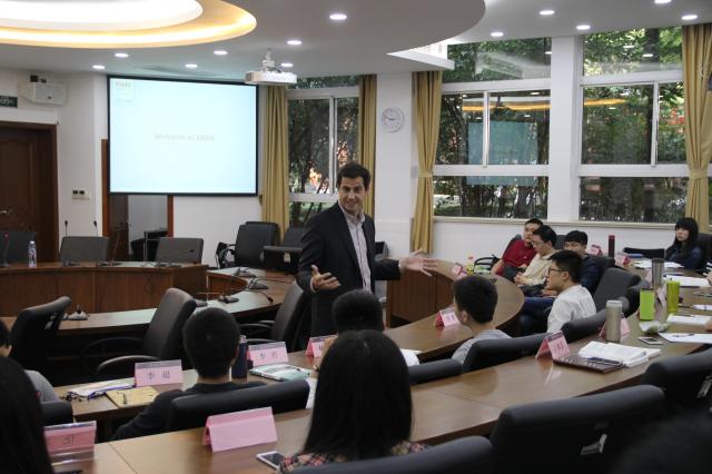 之后,迪亚兹先生为金融专业硕士研究生同学做了一场精彩的讲座。他首先对EADA这所在西班牙出类拔萃的商学院进行了总体介绍。EADA有55年的教学经验以及超过20年的MBA授课经验,是世界上少数较早获得AACSB、AMBA和EQUIS三项顶尖认证的商学院之一,亦是欧洲最优秀的商学院之一。迪亚兹先生详细剖析了商学院全球金融硕士项目在教学培养模式上的优势和特色,并通过一系列的实例展现了该项目毕业生的独特竞争力。在随后的现场问答环节,迪亚斯先生针对同学们关于招生规模、选拔形式、学习和生活条件等方面的问题,进行了耐心细致的解答。最后,教授结合自己的经历和真实世界中的金融、管理案例,向同学们展示了商界卓越人才的特质,分享了自己关于领导力的认识。