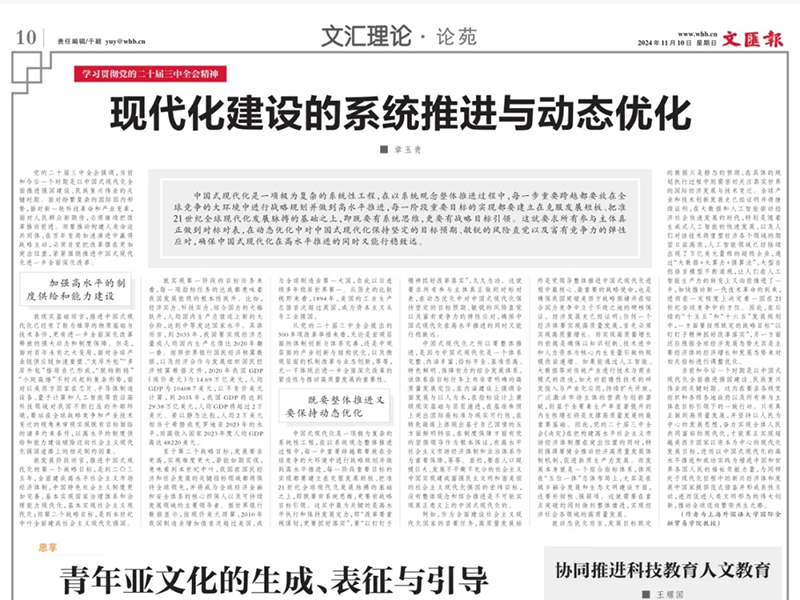 我院主要负责人学习贯彻党的二十届三中全会精神 | 《文汇报》:现代化建设的系统推进与动态优化