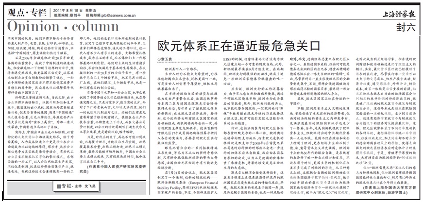 在7月21日的会议上,欧元区各国制定了一个原则:让新的财政机构——欧洲金融稳定基金(European Financial Stability Facility,简称EFSF)承担起避免国家破产的责任。不过,各国却没能扩大EFSF的规模,这意味着他们并没有为欧元区建立起一个可靠的财政当局。此外,新机制最早要在9月才能生效。在此期间,欧洲央行所提供的流动性,就成了避免一些欧洲国家债券价格崩盘的唯一方法。
