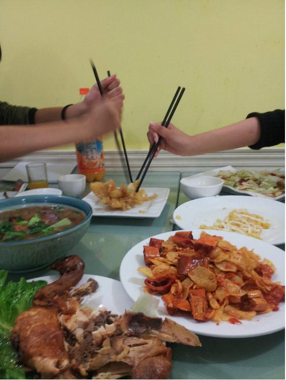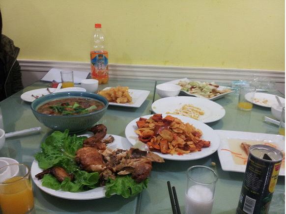 这是一次同乡会,更是一次吃货的狂欢。出现在餐桌上的有许多东北名菜,比如锅包肉,猪肉炖粉条,炸土豆片和手撕包菜都是非常好吃的~~~~~【错过这顿的同学有没有很后悔!!!!