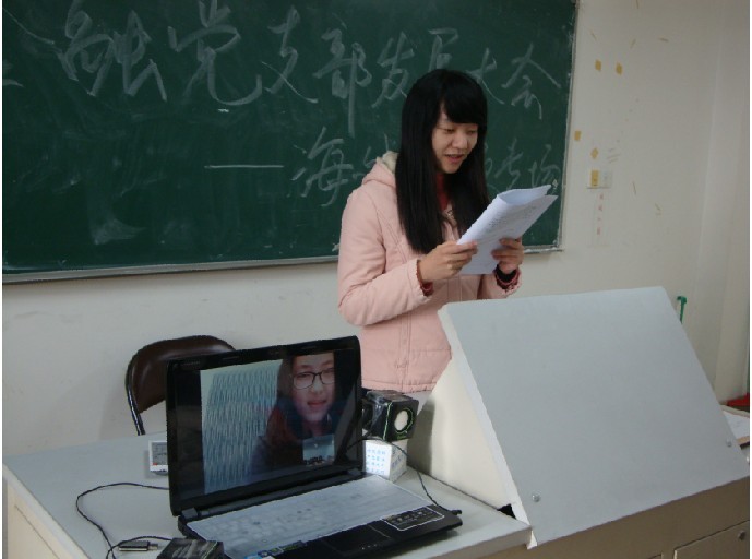2012年12月12日,国际金融贸易学院09级金融党支部支部大会于12点整在2401教室举行。这是一次特别的会议,此次大会的发展对象程艺涟同学因为参与美国西雅图大学“3+2”项目,人在海外无法到现场,故而由她通过电脑视频与大会现场进行连线。