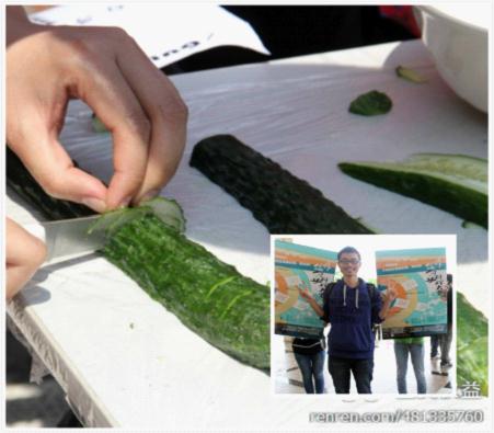 本次大赛共分三轮进行。首先,13日中午在食堂门口举办了第一轮竞技赛——“上外好飞刀”。尽管当天骄阳似火,但是同学们参与的热情丝毫不减,第一轮切黄瓜比拼如火如荼地展开,最终凭借高超的技艺,比赛决出了前15强,成功晋级第二轮。第一轮大赛在主办方给每一位参赛选手颁发小奖品中欢乐地结束了。