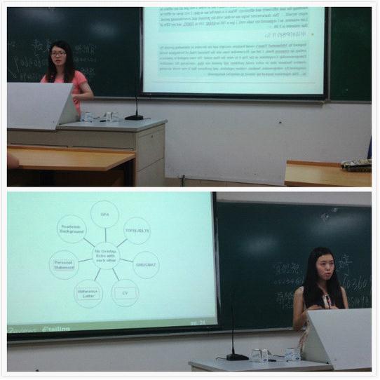 压轴登台的张梦瑶学姐则主要侧重于出国申请的时间安排,为我们提供了许多具体的资料来源和申请细节。加深了我们对出国留学的了解,使我们以后的留学道路更加明朗。她向我们具体讲述了如何使自己的职业规划make sense,使我们深信:即使是故事中的学校,也可能为你转身!