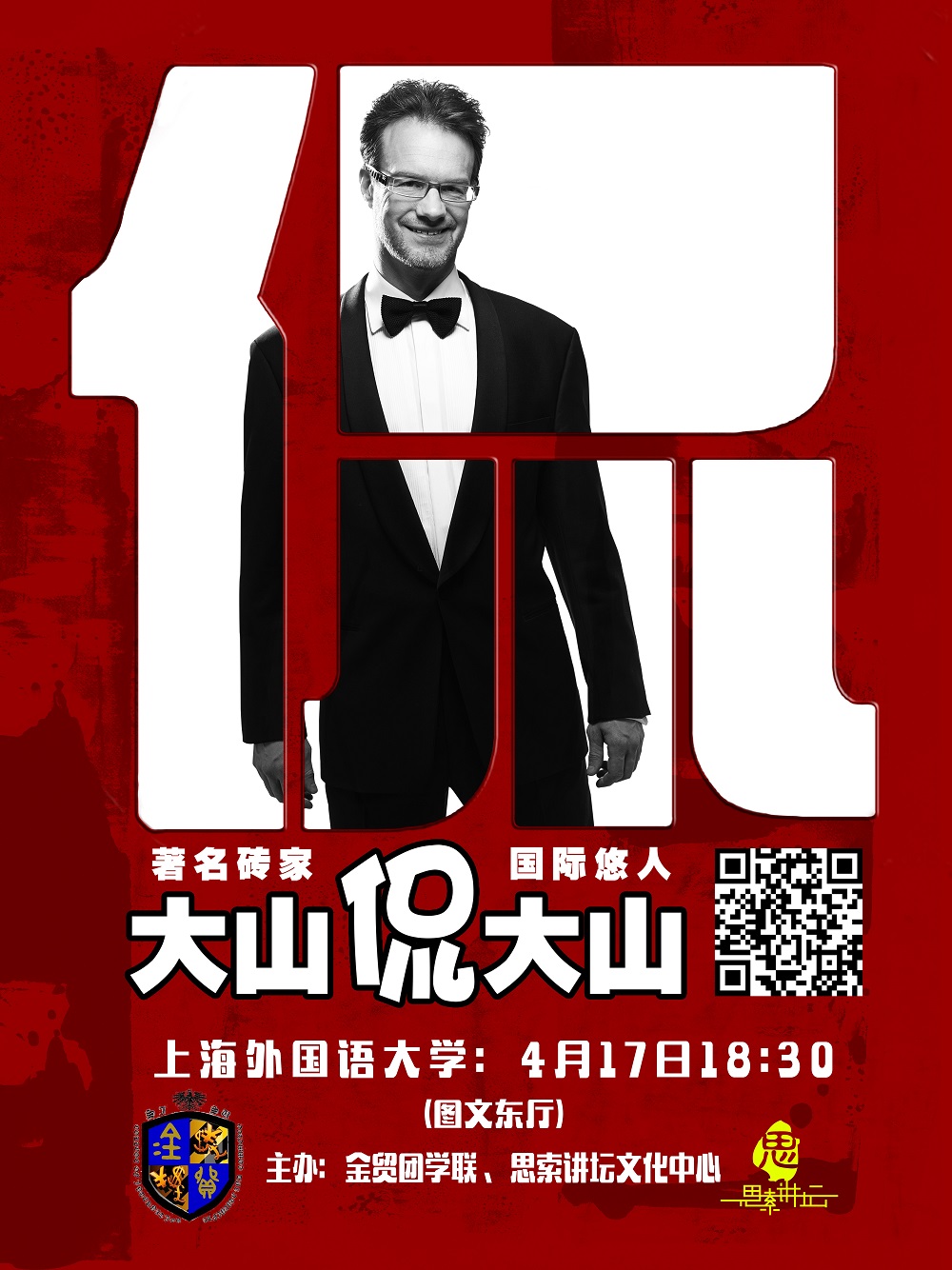 作为中国本土最著名的外籍明星,加拿大中国亲善大使,大山与中国的情缘难解难分。多年来受中西两种文化感染,让他产生了不少思考和感受。这次讲座,他将以一贯风趣幽默的风格,用生动活泼的故事,和同学们分享他的所思所见,以及对如何克服文化障碍的个人体会。