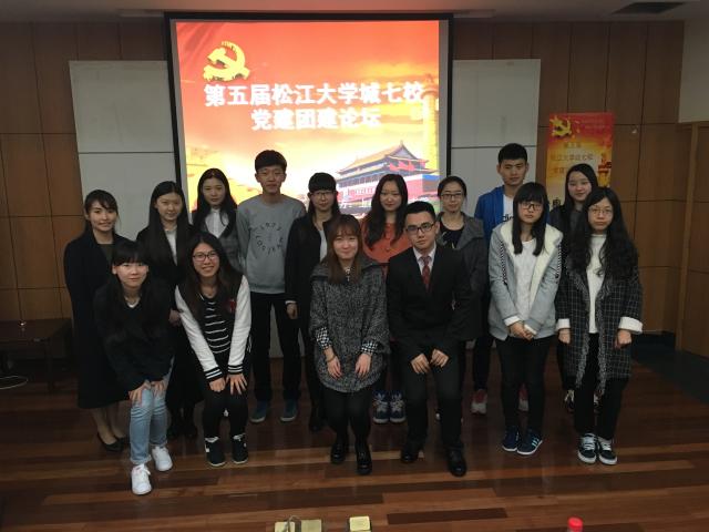 2016年4月6日晚,由上海外国语大学(以下简称“上外”)国际金融贸易学院主办的第五届松江大学城七校党建团建论坛在我校图文信息中心T220报告厅举办。出席此次论坛的嘉宾有上外金贸学院辅导员王瓅苑、王逸菁,分团委学生会主席陈雨柔、副主席朱家琪,以及松江大学城其余六校的有关代表。