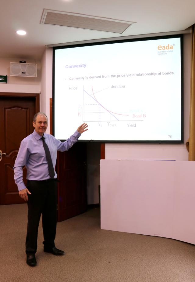 海耶斯教授的课程围绕货币市场、外汇市场、固定收益市场及固定收益产品交易策略等内容而展开,旨在提高学生对于欧洲金融交易市场和金融产品的认识,培养学生国际交流和实践操作的能力。他希望通过课程系统讲授和小组案例讨论,同学们可以了解欧洲金融市场中的定价工具,掌握金融市场的交易模式,并有效管理金融风险。