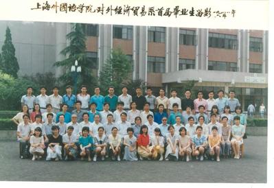 我院第一届本科生——84级经贸系一班全体同学在学校门口拍集体照