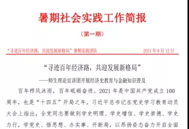 他们结合专业知识,开展“寻迹百年经济路,共迎发展新格局”系列活动,过程中通过师生理论宣讲的形式,深入社区,不断深化党史学习教育效果,与此同时利用自身专业所学,帮助身边的人提高金融风险防范意识……