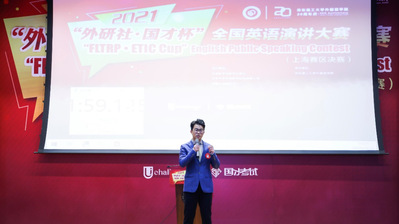 “外研社•国才杯”全国英语演讲大赛是由外语教学与研究出版社和中国外语教育研究中心联合主办、北京外研在线数字科技有限公司和中国外语测评中心联合承办的大赛。“外研社•国才杯”系列比赛是唯一获得教育部认可的英语类学科竞赛。复旦大学、上海交通大学、同济大学、华东师范大学、上海财经大学等各大高校都派出经过层层选拔的顶尖演讲选手参赛,比赛竞争极其激烈。比赛分为校选赛、省市级决赛以及全国决赛。参加省市级决赛的选手为各校校选赛第一名。在上海市的决赛中,选手的比赛分为两部分:三分钟的已备定题演讲以及一分钟当场准备时间、三分钟演讲时间的即兴演讲。