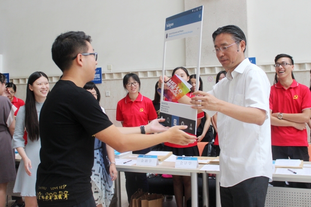 2016年9月5日,迎新的大日子正式拉开帷幕,新生报道工作一早就在图文大厅有条不紊的进行着。新生们满怀期待和兴奋,在国际金融贸易学生党员和团学联代表的帮助下,在图文信息中心完成了各项注册手续。为了纪念新生报到第一天,国际金融贸易学院今年特别增加了“为新生点赞”的照相活动,新生们手举ins板拍照,板上有点赞的字样和数字,寓意着给自己的开学第一天点赞。当新生报到正在如火如荼地进行时,姜锋书记、曹德明校长、王静副书记、杨力副校长等校领导一行亲自莅临图文信息中心,指导学院工作,并亲切的问候了工作人员和新生们,为走近新生,校领导一行也特意参与了此次点赞活动,留下了宝贵的一刻。
