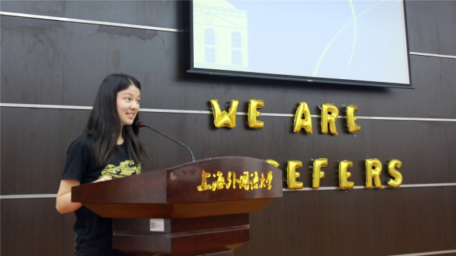 团学联主席徐豫珂结合自身成长经历寄语新同学“勇敢尝试,发现无限的自己”。鼓励学弟学妹们需敢闯,敢梦,不畏惧未来,无悔地过完大学时光。2016级李佳斐作为新生代表发言,她首先表达了成为上外人、金院人的喜悦之情,并特别感谢暑假期间辅导员老师以及学长学姐们对新生的关爱和帮助。她代表全体新生郑重承诺“一定会尽快适应大学生活,珍惜韶华,志存高远,肩负起国家、时代赋予的责任与使命,在拼搏的青春中成就事业华章”。