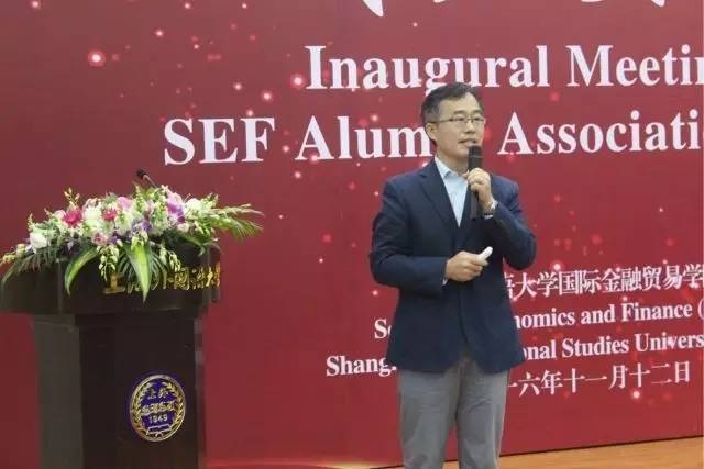上午10点整,成立大会正式开始,由党总支书记戴迪萍老师主持此次大会。会议伊始,章玉贵院长风趣地向各位校友介绍了学院近年来发展的近况和取得的诸多成绩。他讲到,从1984年建起的国际经济与贸易本科专业到现在国贸、会计、金融三个本科专业及金融专业硕士、国际政治经济学博士点的建立,三十多年来,国际金融贸易学院在学科建设、科研发展上取得了长足的进步,吸收了越来越多的优秀生源,并为社会输送了诸多金融、贸易等经济领域、政治领域甚至跨界的国际化人才。章院长同时也感谢了一直在学院默默耕耘的老师们,是他们潜心教学,全心全意地耕耘,才让金院更有活力,也更添厚重。最后,院长也向各位校友表达了自己的期许和祝福。他希望校友能够与学院加强联系,并祝愿校友们可以健康、幸福。