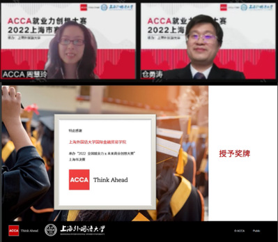 最后, ACCA中国内地市场发展主管周慧玲向承办本次比赛的上海外国语大学国际金融贸易学院授予了水晶奖牌,2022年ACCA全国就业力x未来商业创想大赛上海市决赛完美落幕。