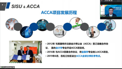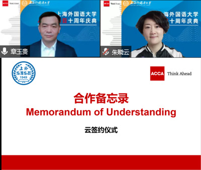 之后,上海外国语大学国际金融贸易学院与ACCA续签了人才培养的合作备忘录,章玉贵院长和朱晓云总监分别作为双方代表进行了线上云签约。