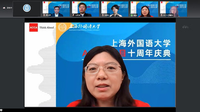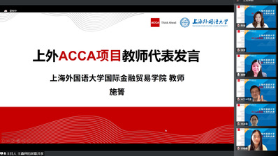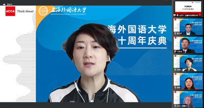 2022年5月15日,我院在线隆重举办上海外国语大学ACCA项目十周年庆典。学校党委副书记钱玲、国际金融贸易学院院长章玉贵、副院长仓勇涛以及会计系和ACCA项目的全体教师参加了此次庆典。ACCA华中区总监朱晓云、中国内地市场发展主管周慧玲和教育及学员发展经理毛坚等嘉宾在线出席了庆典。