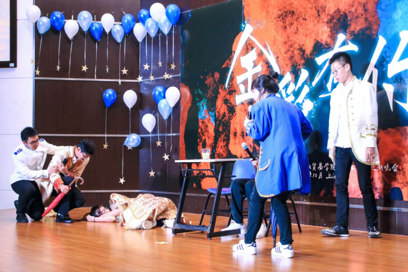 随后,金融二班的同学再绎莎剧经典《哈姆雷特》,笑料不断,现场高潮迭起。