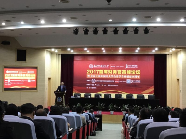 2017年11月4日,为探讨全球化视野下企业转型与CFO职业转型方向,促进学校与企业间理论实践相融合,提升上海外国语大学会计学国际化财务管理人才全球竞争力,上海外国语大学国际金融贸易学院联合ACCA、CFA良师益友公益项目组,协同用友、薪福社、云快报成功举办了“2017首席财务官高峰论坛”暨庆祝上海外国语大学会计专业创办28周年。来自ACCA中国区、首旅如家集团、E&Y 安永、德国大陆集团、KPMG 毕马威、Deloitte德勤、源道投资、PWC普华永道的八名演讲者为与会者带来精彩绝伦的演讲。上海外国语大学党委书记姜锋为论坛致开幕词,上海外国语大学国际金融贸易学院院长章玉贵对参会的全国金融财务业界和学术界的嘉宾表示欢迎。