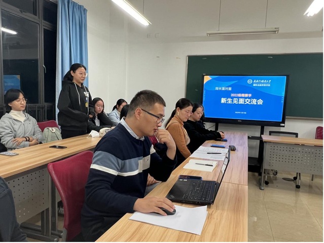 11月16日晚,2022级精算学本科新生交流会在国际金融贸易学院主教楼344教室举行,院长章玉贵教授与2022级精算学全体新生及精算系专业任课教师、新生辅导员老师亲切交流,了解大家初入大学校园的所思所感,勉励广大新同学全力以赴,在上外金院的沃土上,书写自己的精彩故事!