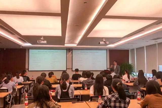 在精彩的沙盘模拟环节,导师以阿里巴巴、唯品会为例,从软、硬件两大方面入手介绍IPO路演(Initial Public Offering,“首次公开发行股票”)。在导师的指导下,各组同学利用提供的相关资料进行讨论、分工、收集信息、整理成稿并制作PPT,以投行的角色帮助京东上市。经过一小时紧锣密鼓的准备,四组同学从外部环境、技术支持、企业运营等维度切入进行分析,给出各具特色、亮点层出的路演演讲。模拟实操加深了同学们对券商业务的认知,导师风趣幽默的点评和切中肯綮的建议也揭示了同学们在操作中优点及存在的不足。