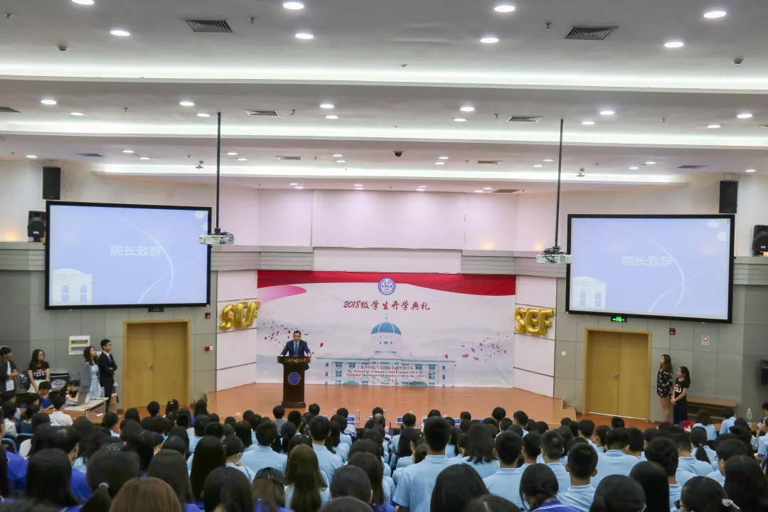 2018年9月14日上午,上海外国语大学国际金融贸易学院2018级学生开学典礼在松江校区隆重举行,来自各地的180名本科生,159名硕士研究生和留学生齐聚图文东厅,共同庆祝这一重要的日子。国际金融贸易学院院长章玉贵、党总支书记戴迪萍、副院长仓勇涛、党总支副书记夏卡莉、办公室主任刘晓华以及专业教师和辅导员老师共同出席了活动。中国国家女子足球队前队长浦玮女士和九五级校友钱瀚卿先生受邀参加典礼并致辞。