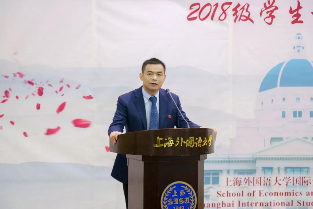 最后,国际金融贸易学院院长章玉贵老师致辞。作为现代大学体系中的两大参与主客体,章院长认为衡量一所大学的优劣应该依据其教师的学养和品格的呈现,而学生则是大学生机与活力的真正依靠。好的老师和学生会推动教育方法的改进和学院的发展。同时,大学校园是大学精神传承的教育生态环境集合体,会给予“百年树人”理念巨大的支撑。而针对“如何在有限的生命里做更多有益的事?”这一问题,章院长也提出了自己的看法。他认为同学们应该首先创造一切条件锻炼身心,在不同心理状态和不确定预期之间找到有效均衡。其次,他指出,同学们应该专注某一领域的深耕细作,保持足够的自信,不刻意追求溢出效应。其次,章院长劝诫同学切勿将他人利益相关者当作工具,培育自己的声誉机制会是成事的关键。最后,章院长希望同学们不要放大自己的成功所带来的不可替代性,只有致力于培养可能超过自己的人,才是大智慧。