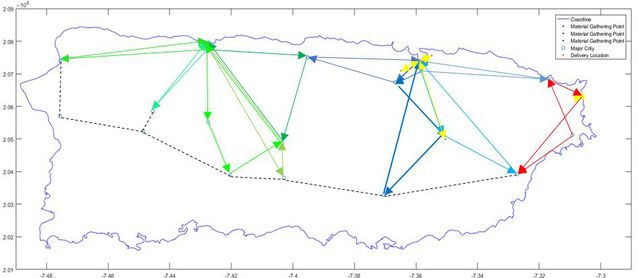 在本次大赛中,他们选择了大赛B题:无人机规划问题。他们利用组委会给的相关数据,对2018年美国波多黎各受灾后物资无人机装箱和远距离调配进行规划,在运用了层次分析法选择无人机和模拟退火算法解决三维装箱问题后,他们选定了三个救援基地的位置,并基于此完成了灾区道路勘探和物资调配任务,使得可探测道路总长达到了720.34km,时间利用率达到了90.5%,灵敏度分析证明其所建模型较为稳健。