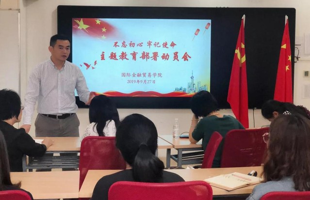 9月27日,金贸学院召开全院教工党员大会,学习贯彻习近平总书记在“不忘初心、牢记使命”主题教育工作会议上的重要讲话精神,传达校党委“不忘初心,牢记使命”主题教育部署动员会会议精神,并部署学院开展主题教育的各项工作。