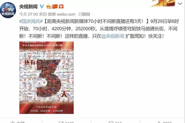 央视新闻将聚焦国庆系列庆典及大阅兵