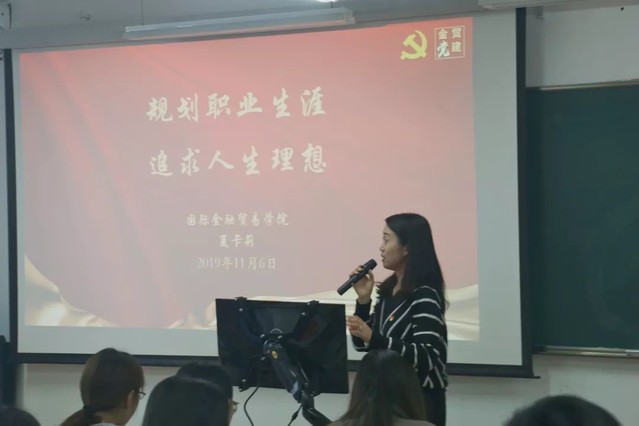 11月6日,国际金融贸易学院党总支副书记夏卡莉老师为分党校学员开展了题为“规划职业生涯,追求人生理想”的专题党课。此次党课,夏卡莉老师根据“不忘初心、牢记使命”主题教育实施计划,结合先前对学院毕业生的就业状况以及在读学生的职业规划现状的调研,分析学生职业生涯发展存在的问题,引导入党积极分子们坚定理想信念,提早做好职业规划,并为之有计划、有针对性地不懈奋斗。同时,引导入党积极分子们“不忘初心,牢记使命”,将个人价值的实现和国家民族的幸福紧密联系。