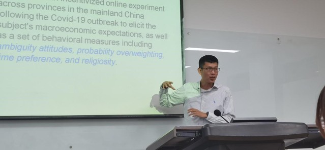 走在学术前沿的“管院讲坛”作为上外管院的特色学术活动,邀请包括国内外知名专家学者,分享最新学术研究成果,使同学们接触到管理学前沿知识,开拓视野。4月30日下午,在第59期“管院讲坛”中,来自深圳大学微众银行金融科技学院、深圳大学南特商学院的李景景副教授分享了以“Wishful Thinking in Macroeconomic Expectations: A Field Experiment in China”为主题的精彩学术讲座。以后疫情时代为背景,李景景团队开展了以 ambiguity attitudes, probability over-weighting,time preference及 religiosity等四方面为侧重点的线上实验,以此分析影响受试者宏观经济预期的因素。
