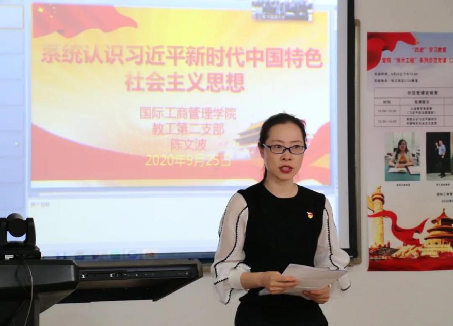 2020年9月25日下午13:00,国际工商管理学院党委“四史”主题学习教育重要活动之“伟大工程”系列示范党课第二讲精彩开讲。学院党委副书记汪丽、教工三个支部所有党员分别在松江、虹口两个会场参加了此次活动。本次党课由学院党委副书记汪丽主持,潘美芹、陈文波两位优秀党员教师主讲。