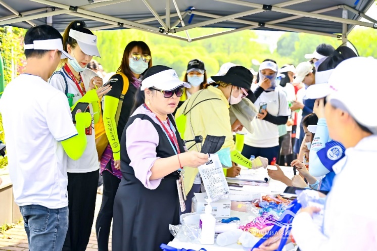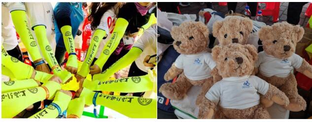 袁洁,上外管院2012级MBA校友,在参赛现场给予学院很多帮助,包括领物资、赛事准备等;并联合其他几位校友一起赞助提供有上外LOGO订制版的冰袖和面巾,现场又继续赞助爱心小熊。