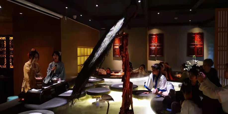 本次活动名为汉服秀活动,实际上被主办方用心办成了中国传统文化荟萃节目。汉服秀表演开始前,有投壶比赛、书法观摩和飞花令游戏等传统节目给大家热身。活动正式开始后,提供了汉服及礼仪介绍、茶艺表演以及水台大厅汉服走秀表演、汉服互动舞蹈等一系列活动。
