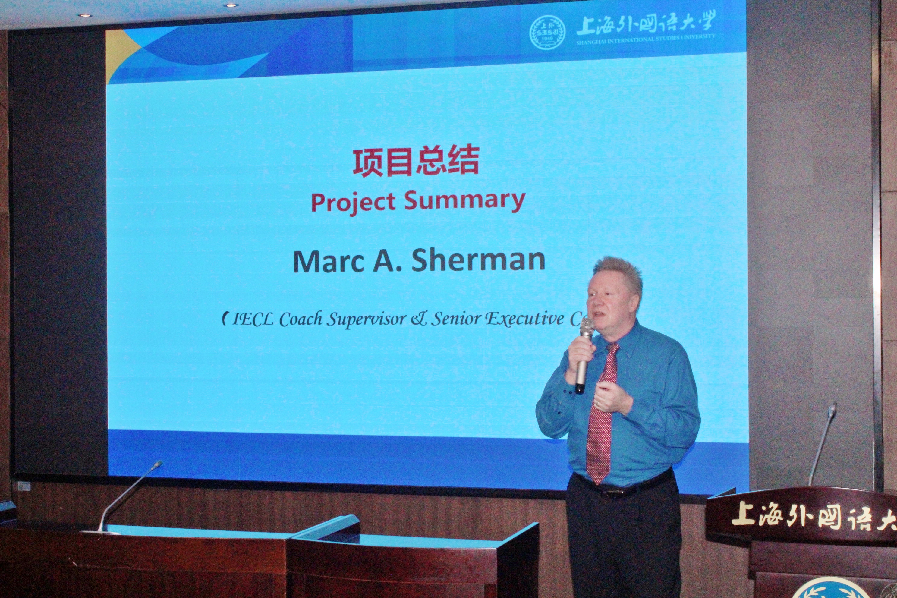 Marc A. Sherman教练代表合作方对项目进行总结复盘。他首先对上外管院提供的全面友好支持表示感谢。在此次辅导项目中,教练帮助学员们在自我认知和自我探索中解惑,清晰职业发展规划。通过不断提问的方式,扩展学员们的视野范围,打破恐惧的桎梏,让有着不同经历的学员们取得内心真正想要的成就。虽然项目结束了,但是关系并没有结束,鼓励同学们大胆创造自己梦想的职业。最后Marc感谢大家一起度过的带有勇气和开放性的三个月的职业探索旅程。