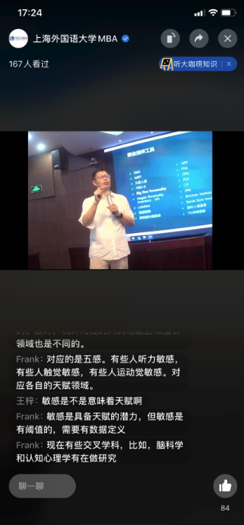 讲座当天适逢台风临近,不少同学仍然不惧恶劣天气,来到现场参与。通过“上海外国语大学MBA视频号”参与聆听直播的同学和校友达300多人次。
