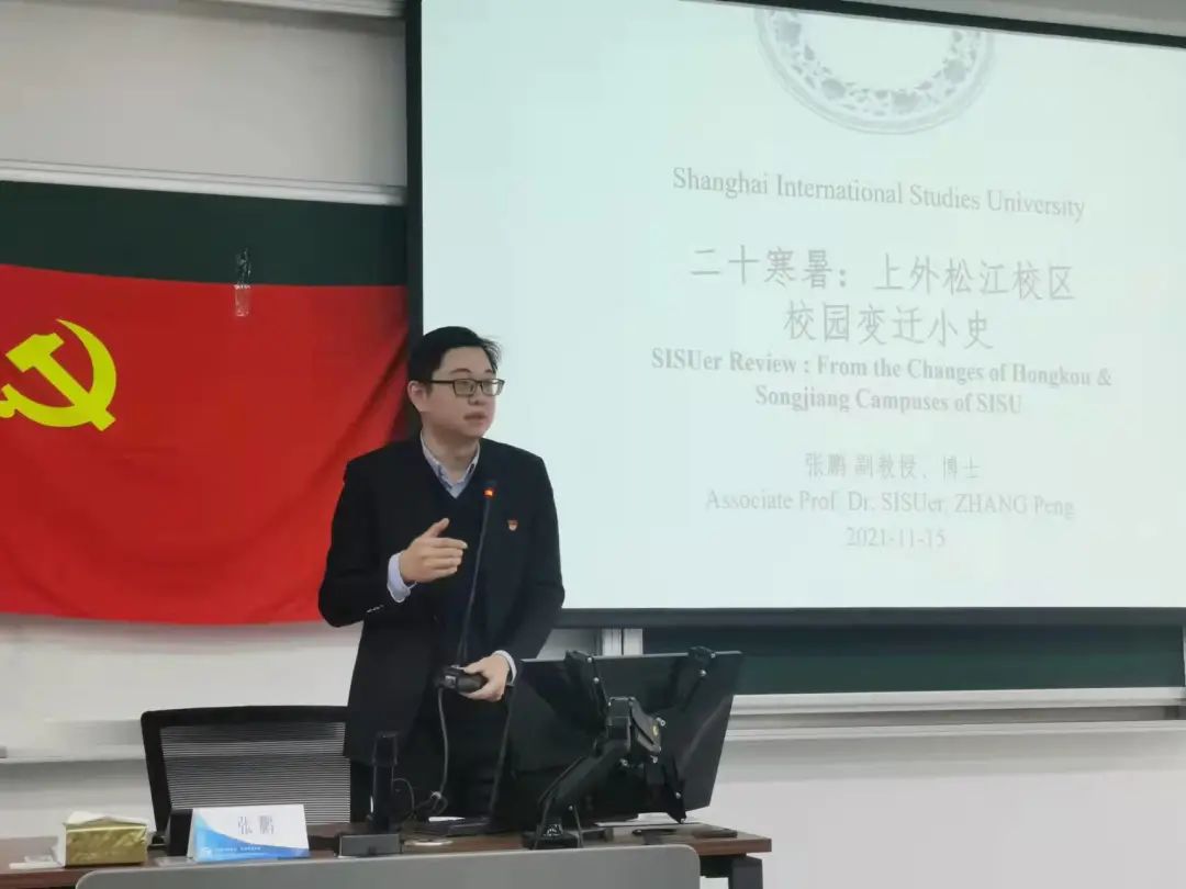历史予人思考,从历史中汲取智慧和力量,能让我们更好的应对未来。张鹏老师首先就上外办学历史展开叙述,综合利用了存留实物、照片、文字记录介绍了上外的办学历史,展现了“筚路蓝缕、以启山林”的开创之风、坚守之力。随后,张鹏老师结合自身学习经历与历史资料,向学员们讲述了上外松江校区和松江大学城的建设历史,通过一系列卫星云图带来的鲜明前后对比,向我们展示了上外乃至整个松江大学城的快速发展历程。接着,张鹏老师介绍了上外松江校区的主要教学建筑,深化了全体学员“建设学校、服务社会”的信念。他强调,办学的过程和学校建设的过程是长久而艰辛的,唯有一代代人肩负责任,奉献自我,才能给上外注入更多活力。张鹏老师希望全体学员们认真学习,运用所学的知识,扎根校园,与祖国同行,为人民奉献,以实际行动为社会主义建设做出应有的贡献。整场党课内容充实,主题独特,讲述方式风趣自然,易于接受,使学员们真正接受了开创精神、奉献精神、坚守精神的洗礼,深刻感悟到上外前辈们吃苦耐劳、乐于奉献的可贵品质以及中国共产党永不懈怠的使命担当。