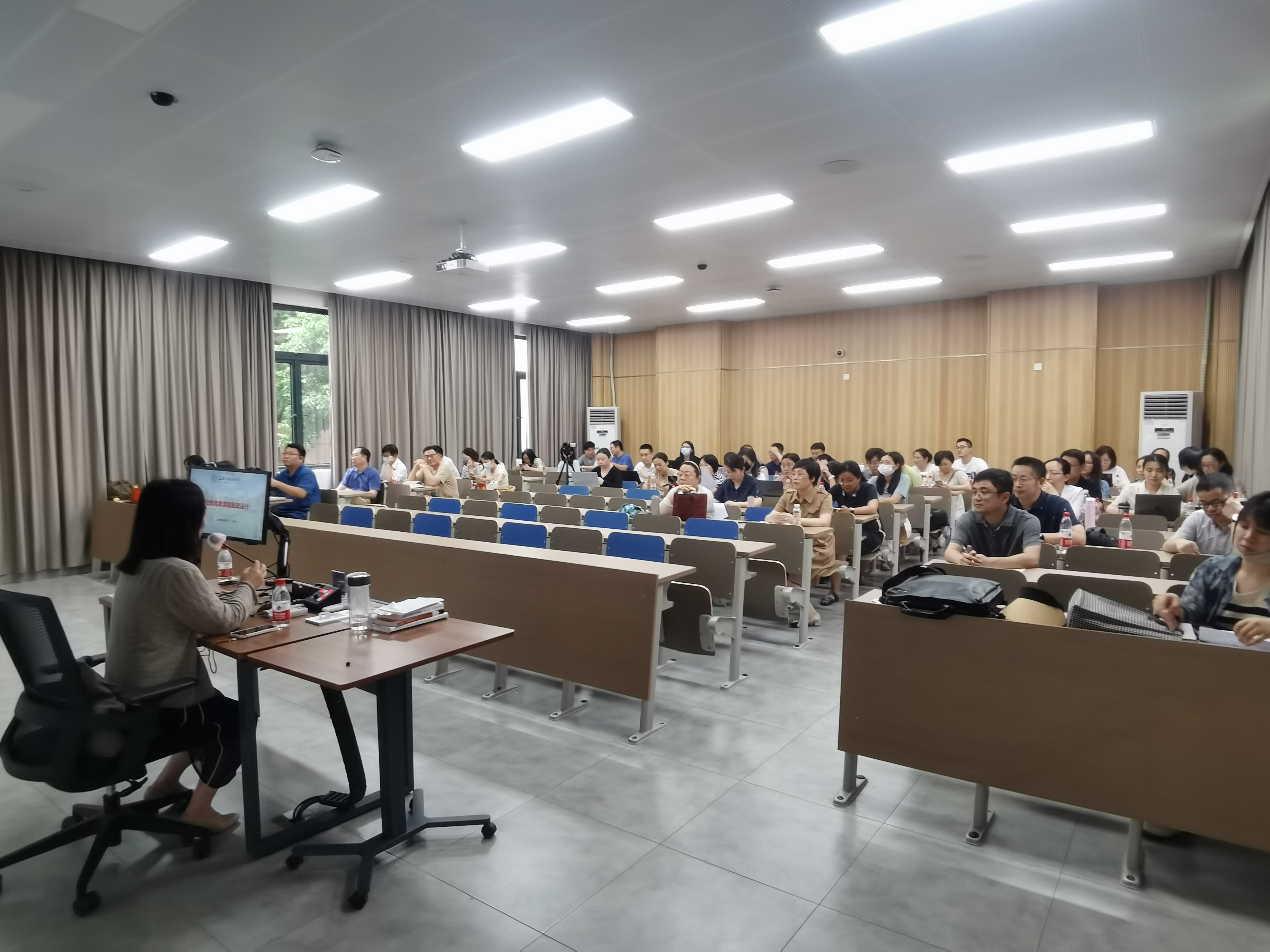 接下来,许宏教授为大家作了题为“专业教育类课程思政设计”的精彩而充实的讲座。她首先和大家分享了自2010年至今中央的主要会议和文件精神,介绍了课程思政的由来及内涵,强调了课程思政在为党育人、为国育才中的重要性;然后,许教授结合教育部2020年颁布的《高等学校课程思政建设指导纲要》,系统介绍了课程思政落实相关的架构、过程、要素、路径等内容,指出应把做人做事的基本道理、把社会主义核心价值观的要求、把实现民族复兴的理想和责任融入各类课程教学之中,使各类课程与思想政治理论课同向而行,行程协同效应;最后,许宏教授利用自己参与的阅读课和俄语语法课等课程中落实思政要求的方法为案例,具体介绍开展课程思政的方法,包括结合学校定位和中国学生发展核心素养来挖掘课程思政元素,引用科技前沿、当今时事、人物传记、历史事件等作为融入策略,采用诊断性评价、过程性评价、总结性评价等多种评价方法来检测课程思政开展的成效等。