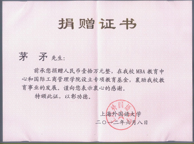 开幕式上,校教育发展基金会孟庆和秘书长首先代表基金会接受了茅矛先生的捐赠,并向他颁发了捐赠证书。接着范徵院长致辞。他首先对此次活动的发起人,毕业于我校工商管理专业的茅矛先生表示感谢。同时,寄语在座学生,牢记工商管理的学科灵魂――企业家精神,希望大家毕业后,不能仅仅占用就业岗位而应该去创造就业岗位,并激励各参赛队能够提出有创意的商业模式,推动中式快餐发扬光大。