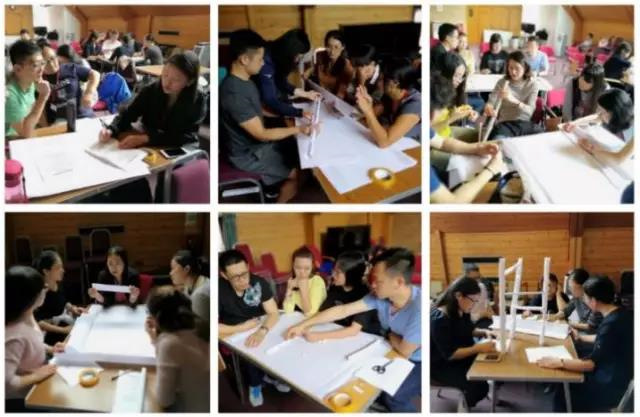 赫德福德学院还特别为SISU MBA同学们准备了一场Team-building活动,旨在提高同学们在团队合作中解决问题的能力,培养创新思维,团队精神,以及理论与实践相结合的思维。活动要求同学们5~6个人组合成一组,在50分钟内用所给的两张白纸,一卷胶带和一把剪刀制作一个可以滚动玻璃球的装置,玻璃球滚动时间最长的小组获胜。