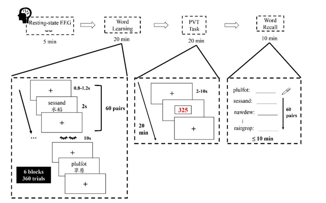 个体在学习和保留新信息(包括新词汇)的能力上表现出相当大的差异。研究采用了两项独立实验,旨在探讨大脑静息状态下的α波振荡与词汇学习能力之间的关系,并考察警觉注意力在这一关系中的中介作用。