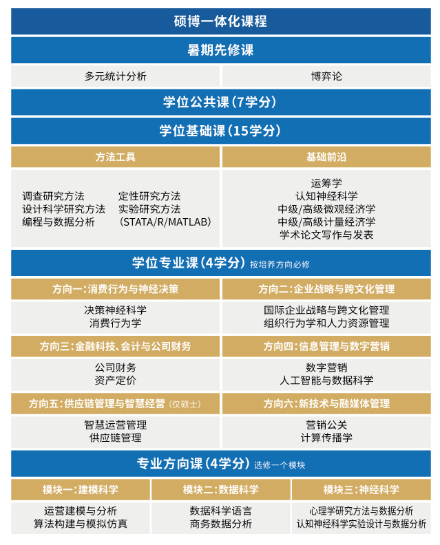 学院特别开设了极具前沿性与基础性的专业方向课程,建立硕博连读机制,硕士培养方案与博士高度衔接,实现硕博一体化。特别设置了硕士基础课全英文项目,全面培养硕士生的科研和文献阅读能力。