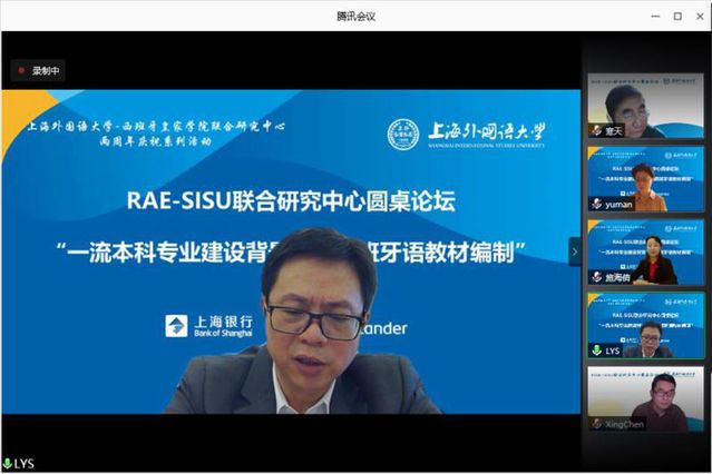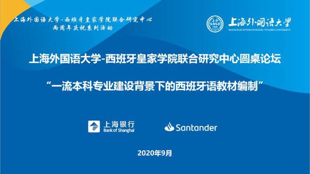 9月22日上午,上海外国语大学-西班牙皇家学院联合研究中心成功举办“一流本科专业建设背景下的西班牙语教材编制”圆桌论坛,本次论坛是联合研究中心成立两周年系列庆祝活动之一。上海外国语大学校长李岩松、北京外国语大学教授郑书九、上海银行副行长黄涛、桑坦德银行亚太区企业及投资银行部、战略合作部总监钟国强、上海外语教育出版社社长孙玉、上海外国语大学西方语系系主任于漫、党总支书记施海倩、全国五所国家级一流本科西班牙语专业负责人以及上海外国语大学西班牙语专业全体教师、研究生参加了此次活动。