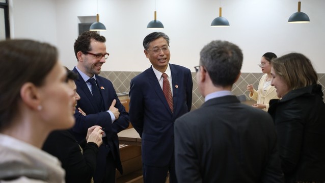 10月16日,上海外国语大学上海全球治理与区域国别研究院和德意志联邦共和国驻上海总领事馆联合主办的中欧对话活动在上海外国语大学松江校区举办。来自近20个欧盟成员国的多名外交官齐聚上外,与师生共同探讨中欧关系的现状,展望中欧关系的发展与未来。
