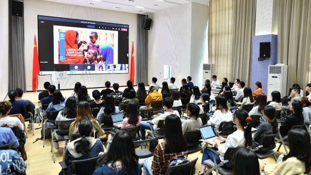 受国家留学基金委员会委托,我校于10月14日承办了世界粮食计划署(United Nations World Food Programme, WFP)的专场宣讲咨询活动。本次宣讲通过在线宣讲与现场观看结合的方式进行,由校对外合作交流处、校学工党委/学生处联合承办。