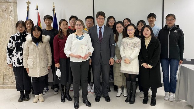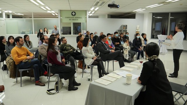 11月27日下午,上海外国语大学希腊语专业的外教Rania Katavouta在希腊驻沪总领馆举办了第一部诗集《夜色下的芭蕾舞者》新书发布会。希腊驻沪总领事孔尼舸先生出席发布会并致辞。上外希腊语专业教师胡晶晶、崔文君和学生参加了发布会。