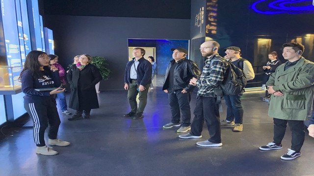 跟随志愿者们步入语博馆的展厅,外国专家们在多媒体互动地球仪前饶有兴致地挥动手臂,寻找自己的国家和母语。“语言的家族”区域的地图上展示出了“茶”在不同国家的发音,外国专家们纷纷用母语朗读,并互相“教学”,在比较中体会文字在传播过程中的历史演变。通过“聆听世界”多语言交互装置,外国专家们聆听着不同的语言,于上外,听世界。语博馆不仅呈现了世界语言的多样面貌,也是一次中外文明交流史的集中展示。