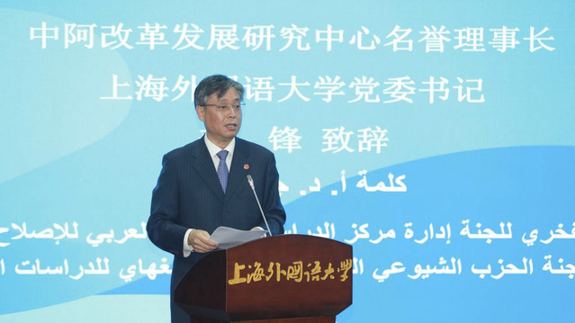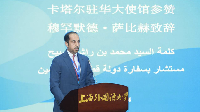 上海外国语大学党委书记姜锋,外交部中阿合作论坛事务大使李成文,卡塔尔驻华使馆参赞穆罕默德·萨比赫出席开班仪式。