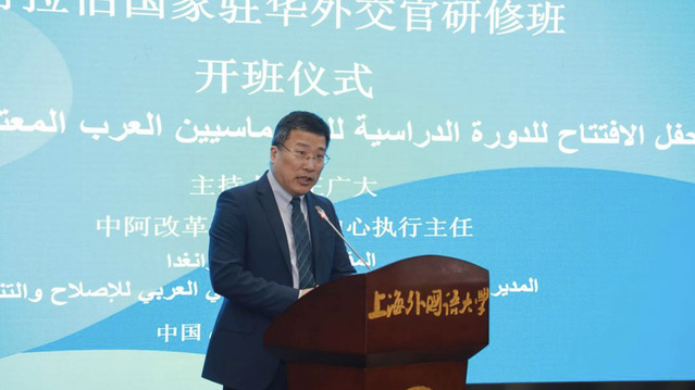 5月24日上午,中阿改革发展研究中心阿拉伯国家驻华外交官研修班开班仪式在上外松江校区举行,来自14国驻华使馆和阿盟代表处的18位外交官参加。