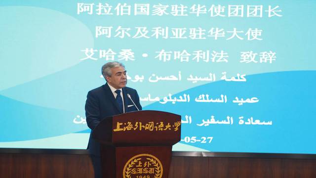 5月27日下午,阿拉伯国家驻华外交官研修班结业仪式在上外松江校区国际教育中心举行。外交部西亚北非司司长、中阿改革发展研究中心名誉理事长王镝,阿拉伯国家驻华使团团长、阿尔及利亚驻华大使艾哈桑·布哈利法,上海外国语大学校长、中阿改革发展研究中心理事长李岩松,外交部亚非司论坛及多边事务处参赞兼处长、中阿改革发展研究中心理事赵亮,中阿改革发展研究中心专家委员会主任朱威烈教授,上海外国语大学科研处处长、中阿改革发展研究中心副主任王有勇教授,上海外国语大学中东研究所所长、中阿改革发展研究中心兼职教授丁俊,上海外国语大学高翻学院教授、中阿改革发展研究中心兼职教授郭子建及研修班全体学员出席结业仪式。结业仪式由中心理事会秘书长、执行主任王广大主持。