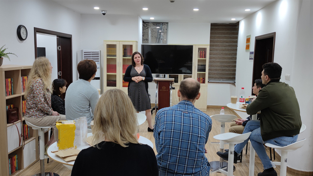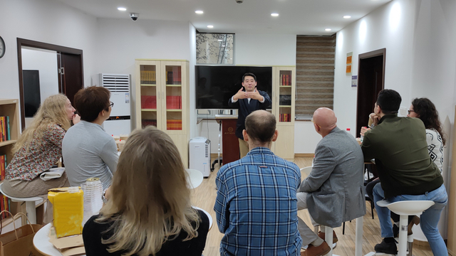 作为东道主,全球文明史研究所所长王献华教授热情欢迎了参加本次活动的外国专家,详细介绍了研究所的总体情况、发展历程和未来愿景,并带领外国专家参观了研究所的书库“亚洲文明特藏”,沿途耐心解答各种问题。王献华教授在与外国专家们的互动中表示,“人类命运共同体”的概念,既是面向未来的,也是面向历史的,这是推动研究所发展进步的一项重要动力。我校授课语种丰富,外国专家来自世界各地,其独特的本族人视角和文化背景会在上外建设国别区域全球知识领域特色鲜明的世界一流外国语大学的过程中发挥重要作用。